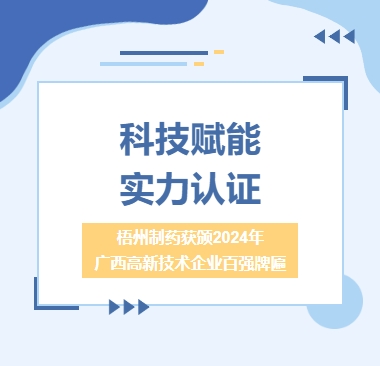 梧州制藥獲頒2024年廣西高新技術企業百強牌匾 連續兩年蟬聯